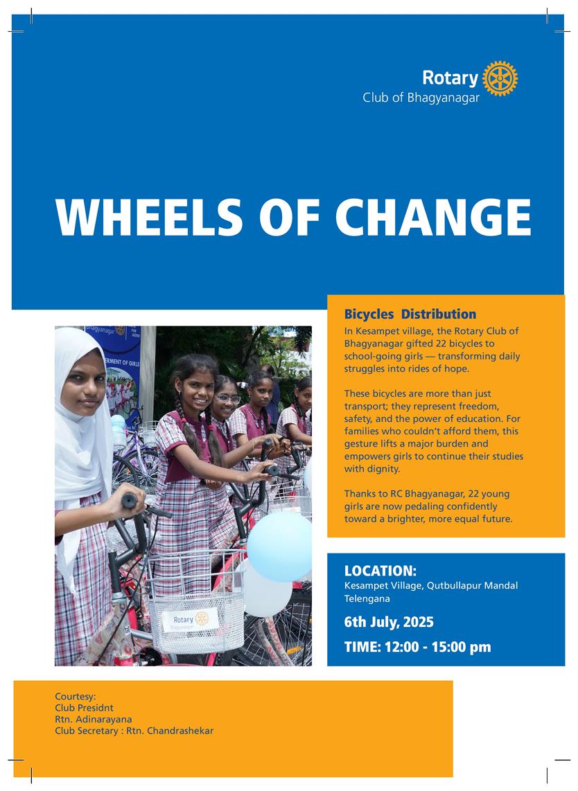 On the Installation Day of Rotary Club of Bhagyanagar, 22 school-go. . .